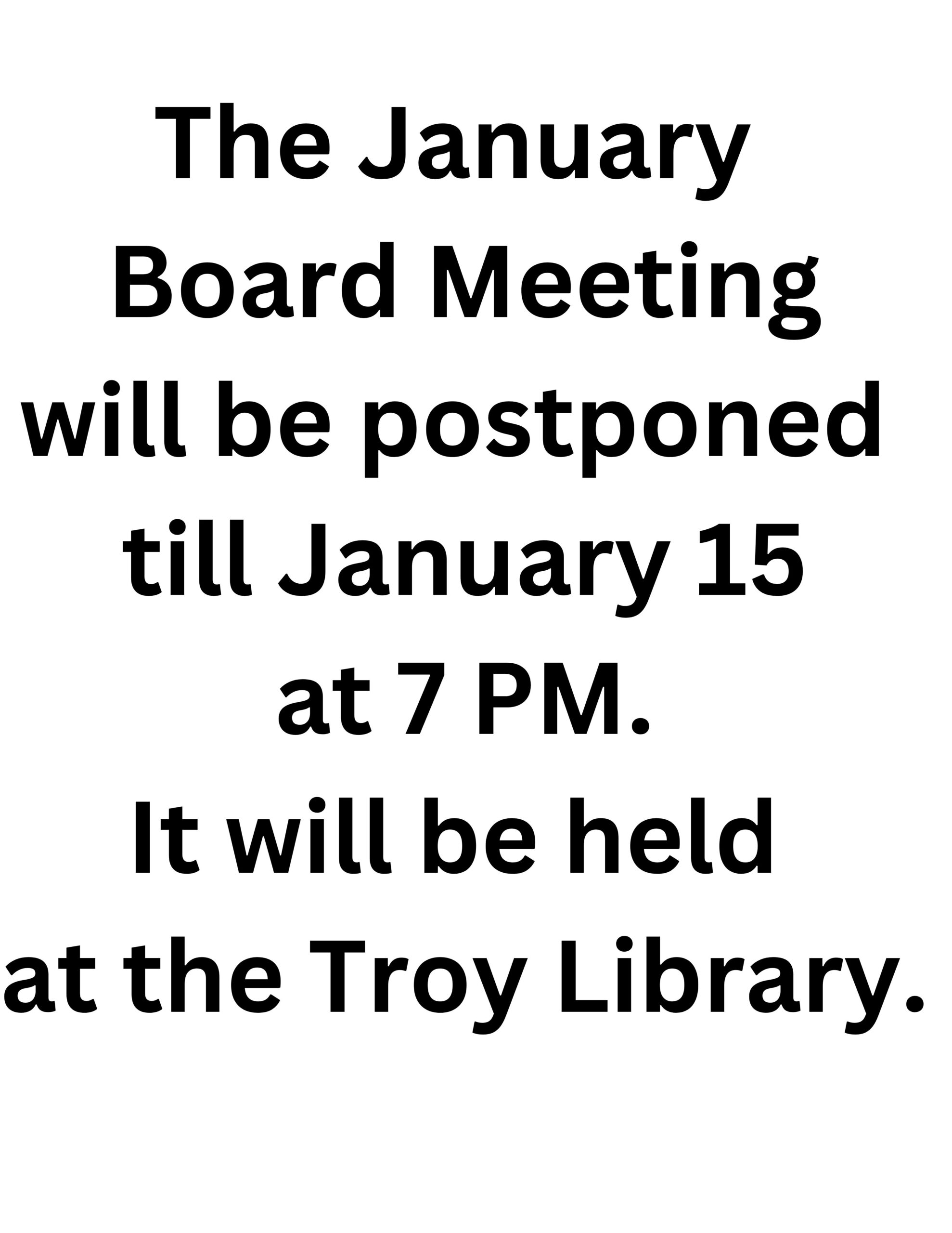 The January Board Meeting will be postponed till January 14 Post author By Library District #1 Doniphan County Post date 7 January, 2025
